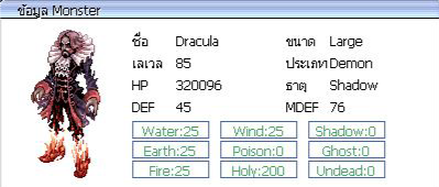( ภาพ : กิจกรรม ) Boss Dracula = 1 ตัว ( 2 ชม เกิด ) ค่าประสบการณ์ ( EXP ) = 120,157 / 38,870