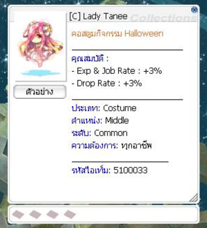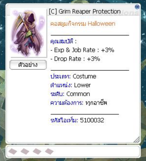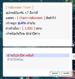 Zeny = 1,000 z / ครั้งที่เข้า Dungeon [NT] Charm Halloween Town = 1 ชิ้น อุปกรณ์สวมใส่ Equipment Upgrade Lv.7 ขึ้นไป = 2 ชิ้น ( Headgear , Armor , Garment , Footgears )