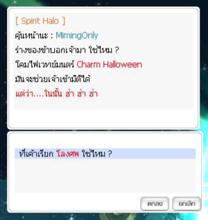 ( ภาพ : กิจกรรม ) จากนั้น NPC : Spirit Halo จะมอบเครื่องรางติดตัว [NT] Charm Halloween เช่าระยะเวลา 4 ชม.