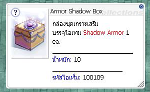 ( ภาพ : ไอเทมที่ได้จาก Wicked Vice Plant Manage ) Armor Shadow Box = 10.00 %