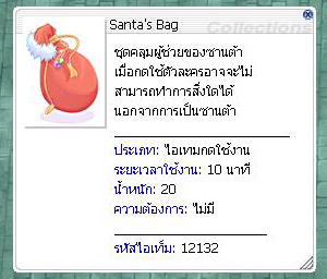 ( ภาพ : ไอเทมที่ได้จาก Wicked Vice Plant Manage ) Santa's Bag = 50.00 %