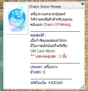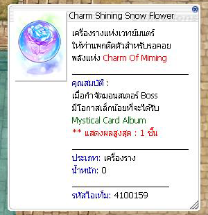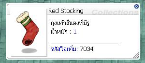 Red Stocking = 5 ชิ้น เมื่อมาถึง ผู้เล่นสามารถคุยกับ NPC Greeting Of Miming พร้อมนำไอเทม Red Stocking จำนวน 5 ชิ้นมาให้ NPC