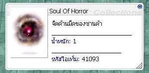 เมื่อกำจัดมอนสเตอร์ มีโอกาสได้รับ : Soul Of Horror = 50.00 %