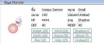 ( ภาพ : Monster กิจกรรม ) Creepy Demon = 50 ตัว ค่าประสบการณ์ ( EXP ) = 6,666 / 2,026
