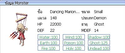 ( ภาพ : Monster กิจกรรม ) Dancing Marionette = 50 ตัว ค่าประสบการณ์ ( EXP ) = 6,666 / 2,026