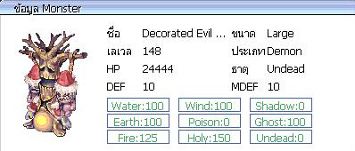 ( ภาพ : Monster กิจกรรม ) Decorated Evil Tree = 50 ตัว ค่าประสบการณ์ ( EXP ) = 6,666 / 2,026