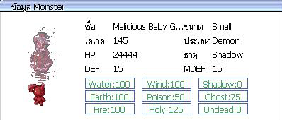 ( ภาพ : Monster กิจกรรม ) Malicious Baby Ghost = 50 ตัว ค่าประสบการณ์ ( EXP ) = 6,666 / 2,026
