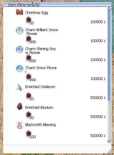 เมื่อกำจัดมอนสเตอร์ มีโอกาสได้รับ : Soul Of Horror = 100.00 % Christmas Egg = 90.00 % Mystical Card Album = 9.00 % Blacksmith Blessing = 7.00 % Hollgrehenn's Shadow Refine Hammer = 5.00 % Guarantee Weapon 8 Up = 2.00 % Guarantee Armor 8 Up = 2.00 % Boss Card Album = 0.10 %