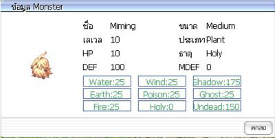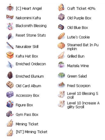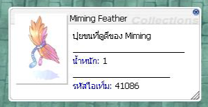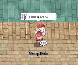 ( ภาพ : กิจกรรม Miming Show ) เมื่อกำจัดมอนสเตอร์ มีโอกาสได้รับ : Well-baked Cookie = 35.00 % Piece of Cake = 25.00 % Mastela Fruit = 7.00 % Old Blue Box = 3.00 % Old Purple Box = 0.50 % Gold = 0.20 % * Miming Feather = 80.00 % * [C] Heart Angel = 0.01 %