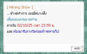 ( ภาพ : กิจกรรม Miming Show ) 2. เมื่อกำจัดมอนสเตอร์ Miming มีโอกาสได้รับ Miming Feather ( นำไปแลกของรางวัล )