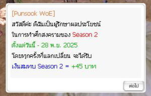 ระยะเวลากิจกรรม : วันที่ 17 ต.ค. 2025 - วันที่ 31 ต.ค. 2025 ก่อนปิดปรับปรุงประจำสัปดาห์ MA 17 เปลี่ยน Mode เป็น Night Mode *** โปรดระวัง ผี Whisper & Kraben บุกเมือง ***