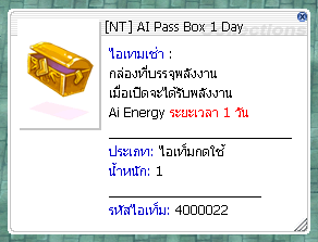 ( เพิ่ม ) ไอเท็ม [NT] AI Pass Box 1 Day