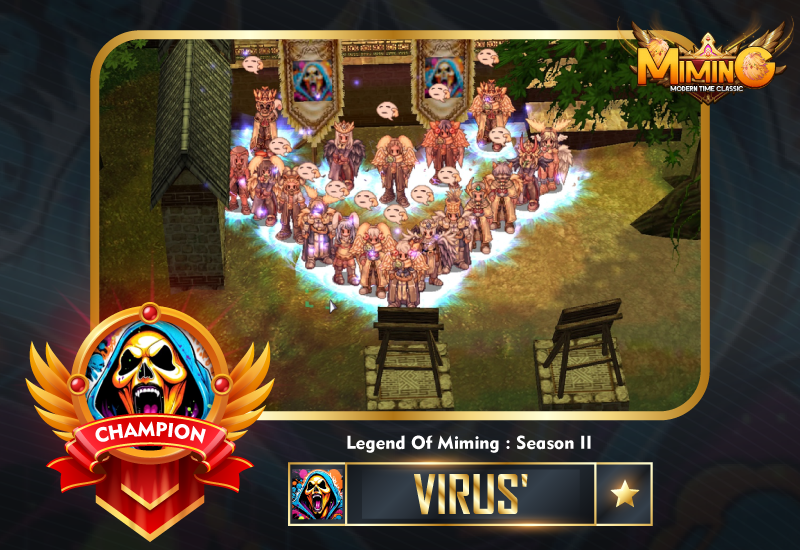 ขอแสดงความยินดีกับแชมป์ Legend Of Miming Season 2 กับ VIRUS' Guild และแสดงความยินดีกับอันดับที่สอง - ซิ ก ก า ดู ส - Guild และอันดับสาม ตี๋หอกที่ซอย๔ Guild ในการแข่งขันครั้งนี้ ทั้งสามกิลด์ได้สร้างรอยยิ้ม และบรรยากาศที่ดุเดือดแบบ ตื่นเต้น ผลัดกันสร้างความเชี่ยวชาญ ให้กับ Miming-Ro เป็นอย่างมาก แอดมินขอบพระคุณผู้เล่นที่มีส่วนสนับสนุนกับเซิร์ฟเวอร์ Miming-RO ของเราเสมอมา